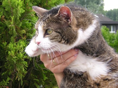 Unser Urmelchen war unsere uneingeschränkte Herrscherin. Sie lebte 13 Jahre bei einer älteren Dame, die dann leider verstarb. Urmel wollte niemand erben und kam daher ins Tierheim. Da wir vorher schon einmal eine alte Katze (Sunny) aus dem Tierheim zu unseren gesetzt haben, wollten wir nach Sunnys Tod wieder eine zu uns holen. So zog Urmel bei uns ein. Sie hatte beide Ohren zerrupft, viele Kratzer am Körper und war sehr ängstlich. Binnen kürzester Zeit hat sie auf leisen Sohlen die Herrschaft übernommen und beschlossen im Schlafzimmer zu wohnen. |